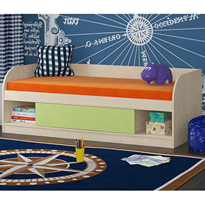 Одна из самых популярных моделей, по форме – это мягкое спальное место, низкий диванчик со спинкой и подлокотниками. Некоторые изготовители укомплектовывают съемными бортиками (детей помладше они уберегут от падения), устанавливают на ножки и подиум.